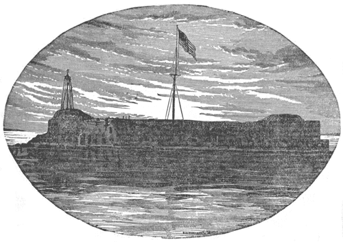 The sun was still shining brightly in the western horizon as we weighed anchor, and with colors flying and whistle sounding, steamed slowly towards the majestic bay which expands its broad bosom before the city of Charleston. The pilot, dressed in navy blue, stood at the window of the pilot-house, guiding the helmsman and announcing the various points of historic interest.