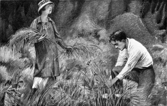 | Cutting the wiry brown stems in the fern-filled glade. |