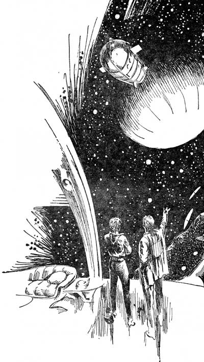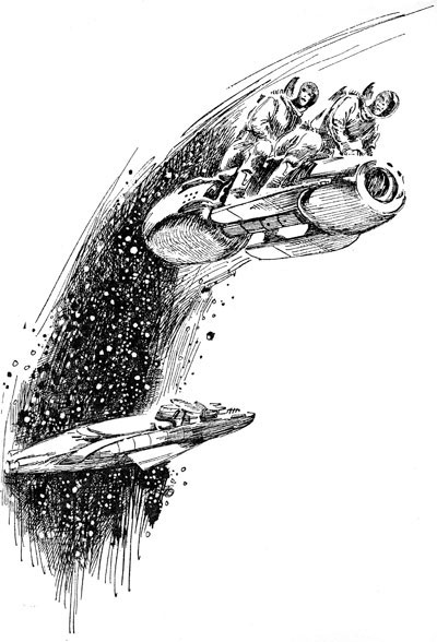He hunted until the Altair swam into the viewfield. At this distance the spheroid looked like a tiny crescent moon, dully painted; but he could make out the sinister shapes of a rifle turret and a couple of missile launchers. "Have a look," he invited. Her hair tickled his nose, brushing past him. It had a delightful sunny odor.