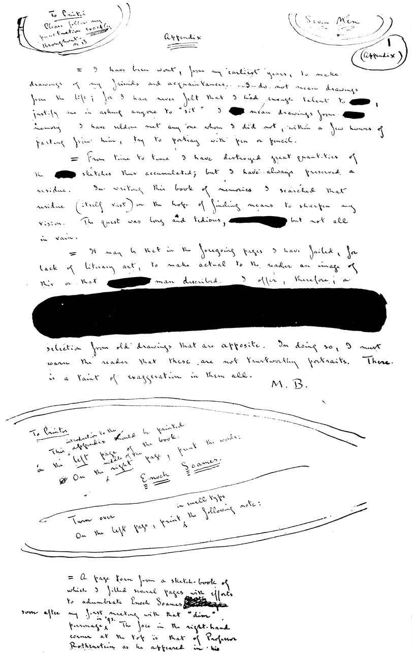 A Page from the Manuscript of Max Beerbohm’s “Seven Men” Frontispiece