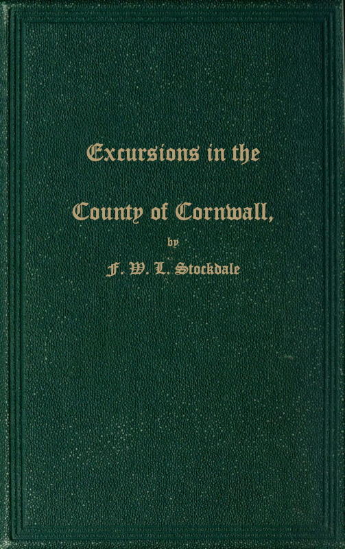 The Project Gutenberg EBook of Excursions in the County of Cornwall, by F. W. L. Stockdale This eBook is for the use of anyone anywhere in the United States and most other parts of the world at no cost and with almost no restrictions whatsoever. You may copy it, give it away or re-use it under the terms of the Project Gutenberg License included with this eBook or online at www.gutenberg.org. If you are not located in the United States, you'll have to check the laws of the country where you are located before using this ebook. Title: Excursions in the County of Cornwall Author: F. W. L. Stockdale Release Date: April 9, 2019 [EBook #59237] Language: English Character set encoding: UTF-8 *** START OF THIS PROJECT GUTENBERG EBOOK EXCURSIONS IN THE COUNTY OF CORNWALL *** Produced by Chris Curnow, Barry Abrahamsen, and the Online Distributed Proofreading Team at http://www.pgdp.net (This file was produced from images generously made available by The Internet Archive)