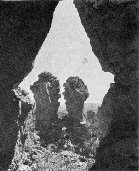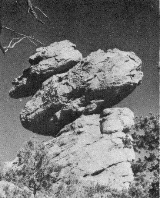 Unbelievably tall and slender pinnacles, startling likenesses of giant beasts and men, grotesque and weird figures such as might inhabit another world—all these and many more, carved by Nature in volcanic rock, are crowded into 17 spectacular square miles of ridge and canyon on the west flank of the Chiricahua Mountains.